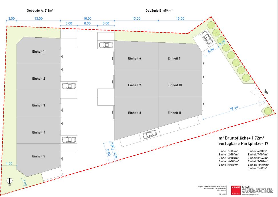1.172 qm Workspace & Storage verteilt auf 11 moderne Hallen mit Größen zwischen 96 -142 qm die sowohl gemietet als auch gekauft werden können.